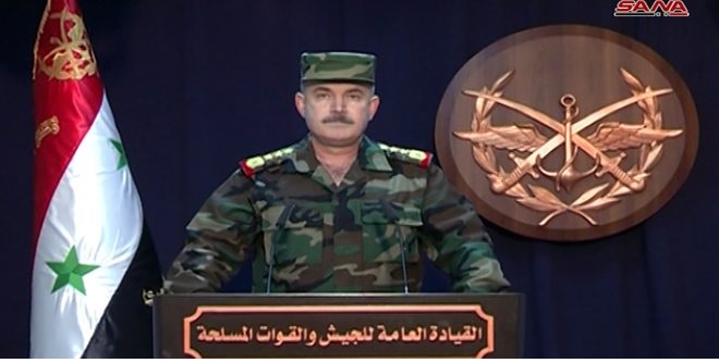 وأضاف البيان “تأكيداً على أهمية تضافر جهود جميع أبناء الوطن في صون السيادة الوطنية تجدد إصرارها على سحق الإرهاب ودحر كل الغزاة والمحتلين عن تراب سورية الطاهر وتضمن القوات المسلحة السورية الأمن الكامل لجميع المواطنين السوريين وغيرهم الموجودين في المنطقة.”