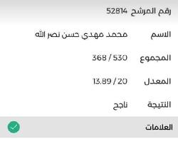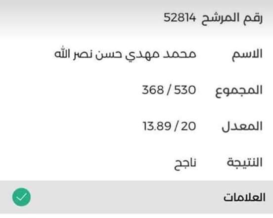وأشار الناشطون وفق الصورة المتداولة، إلى أن محمد مهدي حسن نصرالله، نجح في الامتحانات الرسمية التي تسبق الالتحاق بأول سنة جامعية، بمعدل 13.89 من 20.