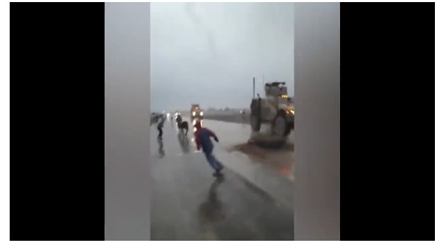 نشرت وسائل التواصل الاجتماعي السورية فيديو يظهر فيه مجموعة أطفال يرشقون دورية أمريكية في محافظة القامشلي شمال سوريا.