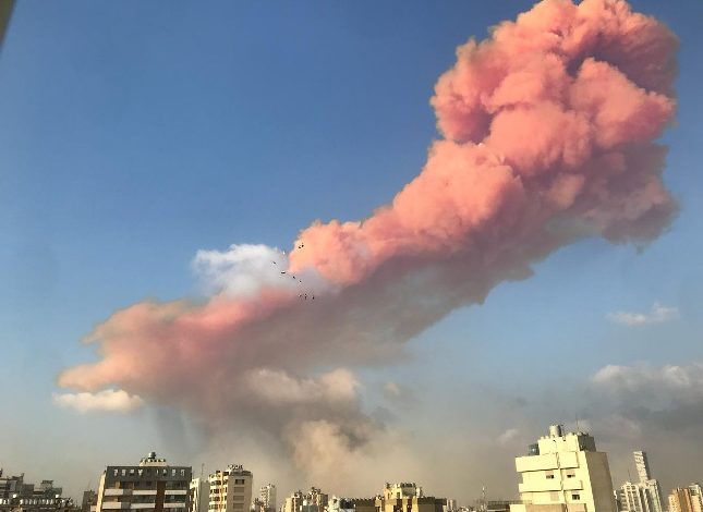 بالنظر إلى صور الحادث في بيروت، نرى لون السحابة بعد الانفجار وردية زاهية.