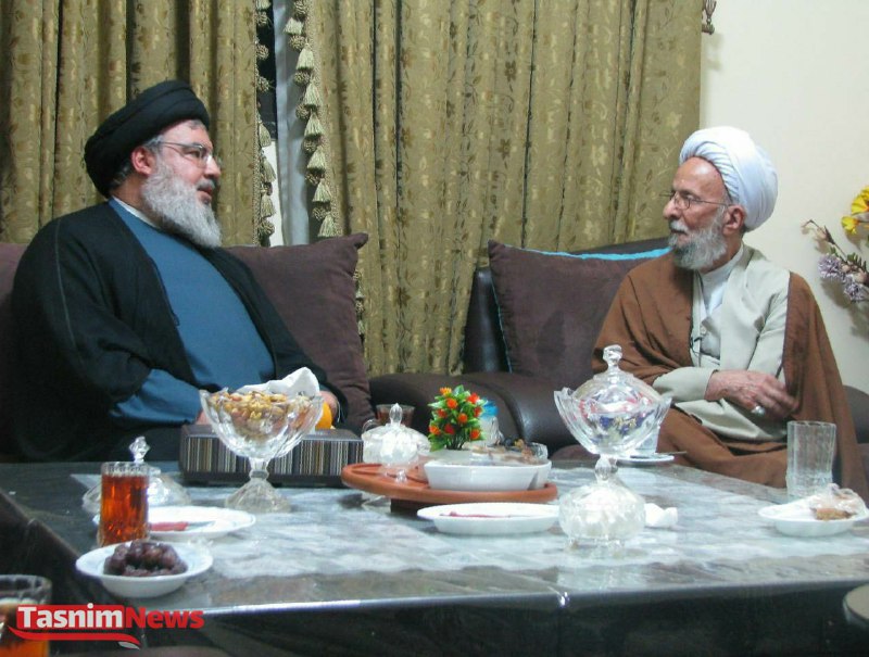 صورة تُنشَر لأول مرة تجمع السيد حسن نصر الله مع الفقيد المرحوم آية الله العظمى الشيخ محمد تقي مصباح اليزدي (قدس سره)