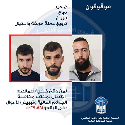 مديرية الأمن الداخلي اللبناني نشرت صورا لثلاثة من أعضاء تلك الشبكة، كما نشرت تفاصيل هوياتهم، وتضم الشبكة اثنين من السوريين واثنين من لبنان، كما تضم لبنانية مهمتها “تأمين زبائن عبر موقع التواصل الاجتماعي “فايسبوك”، لشراء الدولارات المجمّدة”.