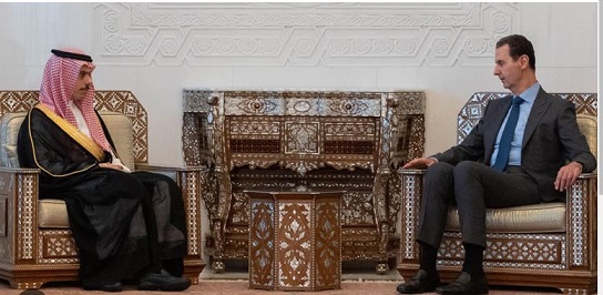 أعلنت وسائل إعلام رسمية أن الرئيس السوري بشار الأسد التقى، اليوم الثلاثاء، وزير الخارجية السعودي الأمير فيصل بن فرحان في دمشق.