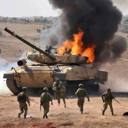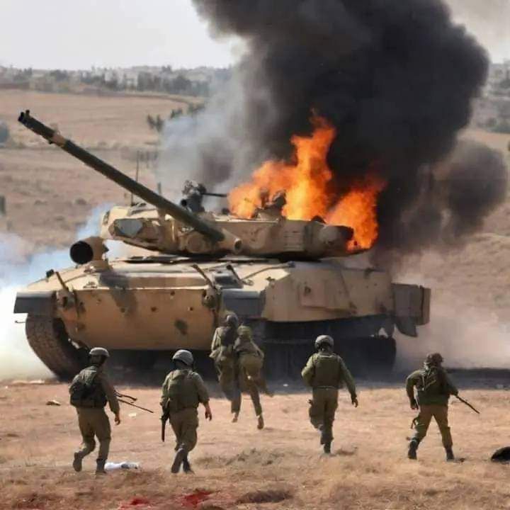 وتظهر الصور عدد من جرحى وقتلى الاحتلال الغاشم فضلا عن احتراق الدبابات التي تعتبر من احدث الاليات العسكرية ولكنها اصبحت خاوية بفعل الضربات المباركة للمقاومة الاسلامية الفلسطينية