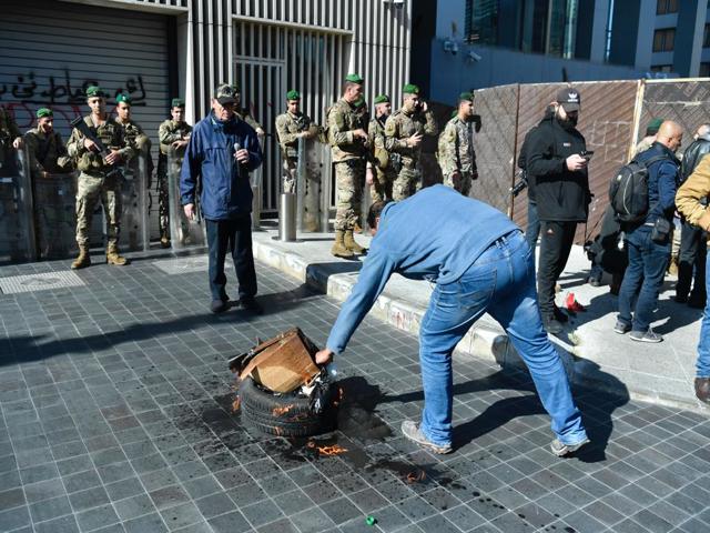 وعمد المعتصمون إلى إحراق الإطارات أمام مدخل المصرف، وقطع الطريق الرئيسية في شارع الحمراء، ورفعوا شعارات منددة بالسلطة وبخاصة المصرفية.