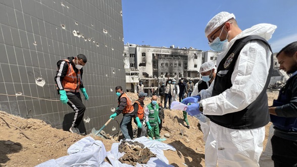 أعلن المكتب الإعلامي الحكومي في قطاع غزة أن طواقم البحث تمكنت من انتشال 30 جثة كانت مدفونة بمقبرتين في مجمع الشفاء الطبي، مؤكدا أن مصير نحو ألف شخص لا يزال مجهولا.