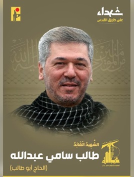 وقال "حزب الله" في بيام له: "بمزيد من الفخر والاعتزاز، تزف المقاومة الإسلامية الشهيد المجاهد القائد طالب سامي عبد الله "الحاج أبو طالب"، مواليد عام 1969 من بلدة عدشيت في جنوب لبنان، والذي ارتقى شهيدا على طريق القدس".