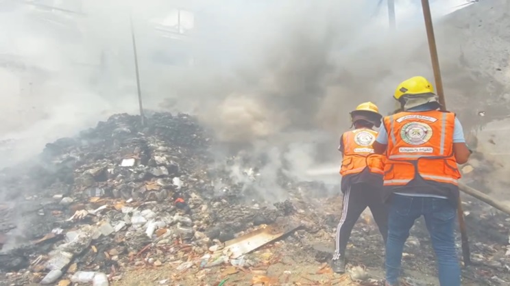 ونشر الدفاع المدني لقطات مصورة لعمليات إخماد الحريق الذي اندلع في منطقة مصبح شمالي رفح، مستخدما معدات بسيطة وغير كافية بسبب الحرب والحصار الإسرائيلي الخانق المفروض على القطاع الفلسطيني.