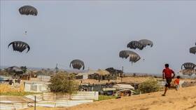 وأوضح مصدر طبي إن عملية الإنزال الجوي تسببت بمقتل طفل فلسطيني وإصابة آخرين، إثر سقوط صناديق مساعدات على خيام نازحين في منطقة المواصي.