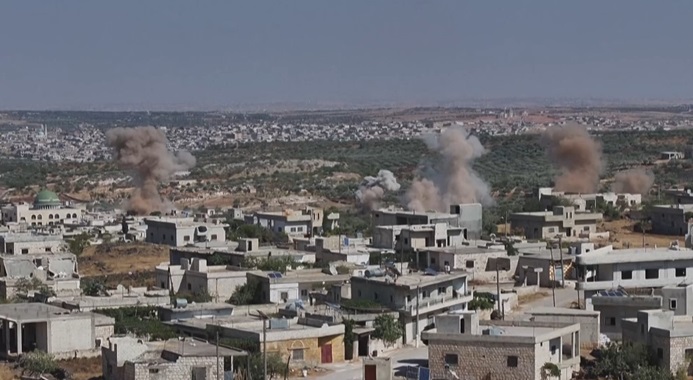 وأظهرت مقاطع مصورة الطيران الحربي السوري -الروسي يدك تجمعات ومقرات المجموعات الإرهابية التابعة لما يسمى "جبهة النصرة" الارهابية في مدينة "دارة عزة" الواقعة إلى الغرب من مدينة حلب في سوريا.