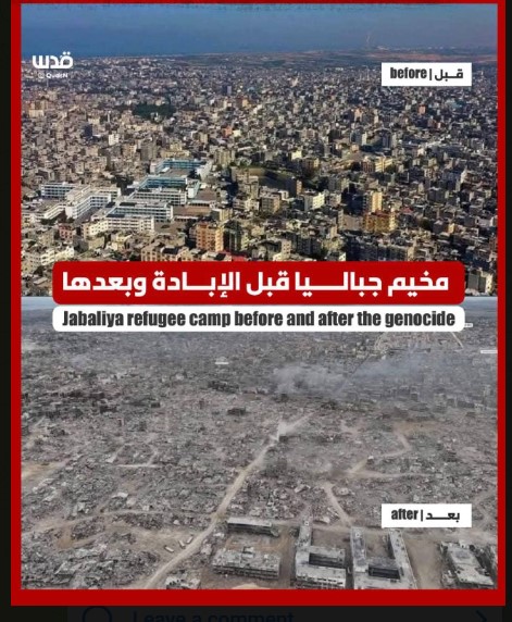 صورتان لنفس المكان.. هكذا كان مخيم جباليا قبل أن تمر به آلة الإجرام والإبادة الإسرائيلية
