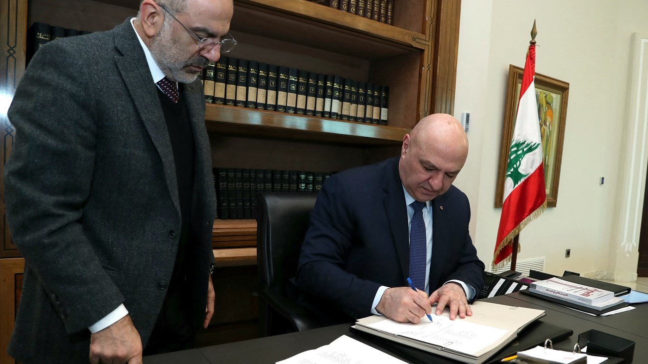 وقع الرئيس اللبناني جوزيف عون، السبت، مرسوم قبول استقالة حكومة الرئيس نجيب ميقاتي، ومرسوم تكليف الرئيس نواف سلام بتشكيل الحكومة، إذ وقّع عون مع الرئيس المكلّف مرسوم تشكيل حكومة من 24 وزيراً.