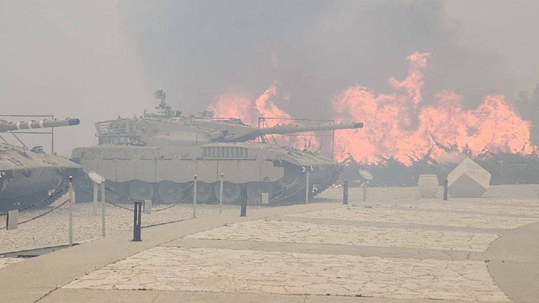 نشرت وسائل إعلام إسرائيلية اليوم الثلاثاء، مشاهد لحرائق واسعة امتدت لتصل إلى متحف المدرعات في اللطرون، بالقرب من القدس.