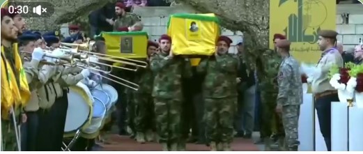و ووريت جثامين الشهداء الثری الی جانب رفاقهم من الشهداء القادة، الحاج عماد مغنية والشهيد مصطفی بدرالدين.