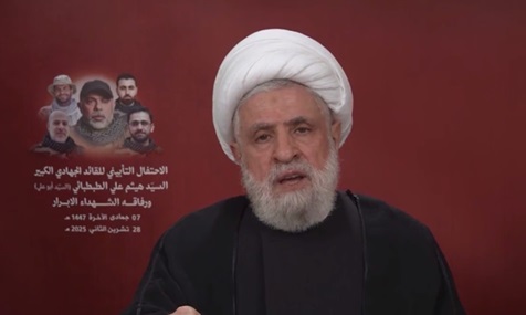 أكد الأمين العام لحزب الله اللبناني، الشيخ نعيم قاسم، اليوم الجمعة، (28 تشرين الثاني 2025 )، أن هدف الاغتيال الإسرائيلي للقائد العسكري في الحزب أبو علي طبطبائي ورفاقه لم يتحقق، مشيراً إلى أن الحزب متماسك وله أصول وجذور.