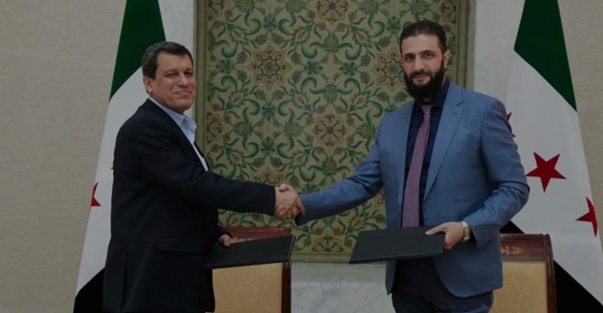 في 10 آذار/مارس 2025 وقّع قائد قوات سوريا الديمقراطية مظلوم عبدي ورئيس الحكومة الانتقالية في دمشق أحمد الشرع اتفاقاً سياسياً – عسكرياً برعاية أمريكية وأوروبية، عُرف إعلامياً بـ"اتفاق 10 آذار". هدف الاتفاق إلى دمج قوات قسد في الجيش السوري وأجهزة الدولة الجديدة، وتوحيد الإدارة المدنية في شمال وشرق سوريا مع مؤسسات الحكومة الانتقالية، مع الحفاظ على صيغة من اللامركزية وضمان تمثيل الأكراد وباقي المكوّنات في العملية السياسية والهيئات التنفيذية. كما نصّ على مبادئ لدمج البنى الأمنية والإدارية، وتنظيم إدارة المعابر والحدود وحقول النفط، ووُضع له جدول زمني ينتهي مع نهاية عام 2025 لتنفيذ بنوده الأساسية.