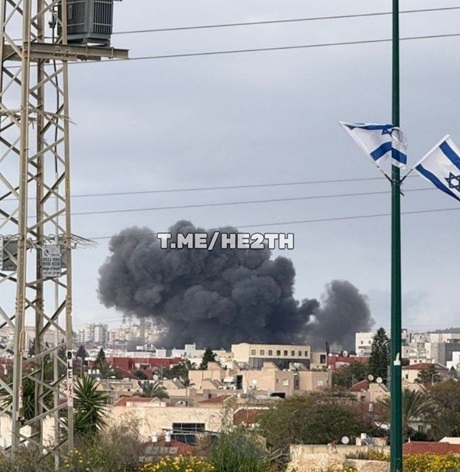 أصيب أحد المصانع في منطقة النقب قرب مدينة بئر السبع جنوب إسرائيل بصاروخ إيراني، ما أدى إلى اندلاع حريق كبير وتصاعد دخان كثيف.