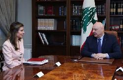 للمرة الثانية.. المبعوثة الأمريكية مورغان أورتاغوس ترتدي قلادة تحمل نجمة داوود خلال لقاءها الرئيس اللبناني (صور).