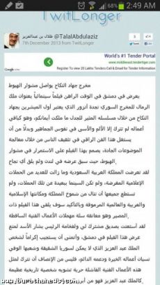 الامير طلال بن عبد العزيز يستجدي الرحمة من الرئيس السوري بشار الاسد لمنع عرض فلم