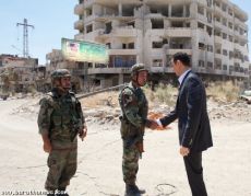 الرئيس السوري بشار الاسد يزور نقاط الجيش في داريا بمناسبة ذكرى عيد الجيش