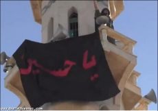 رفع راية مرقد الإمام الحسين (ع) على مسجد الإمام الحسن (ع) في القصير
