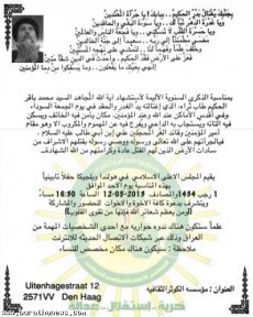 بمناسبة الذكرى السنوية الخالدة لاستشهاد آية الله محمد باقر الحكيم (رض) ...يقيم المجلس الاسلامي الاعلى في هولندا وبليجكا احتفالاويدعو ابناء الجالية للحضور والمشاركة