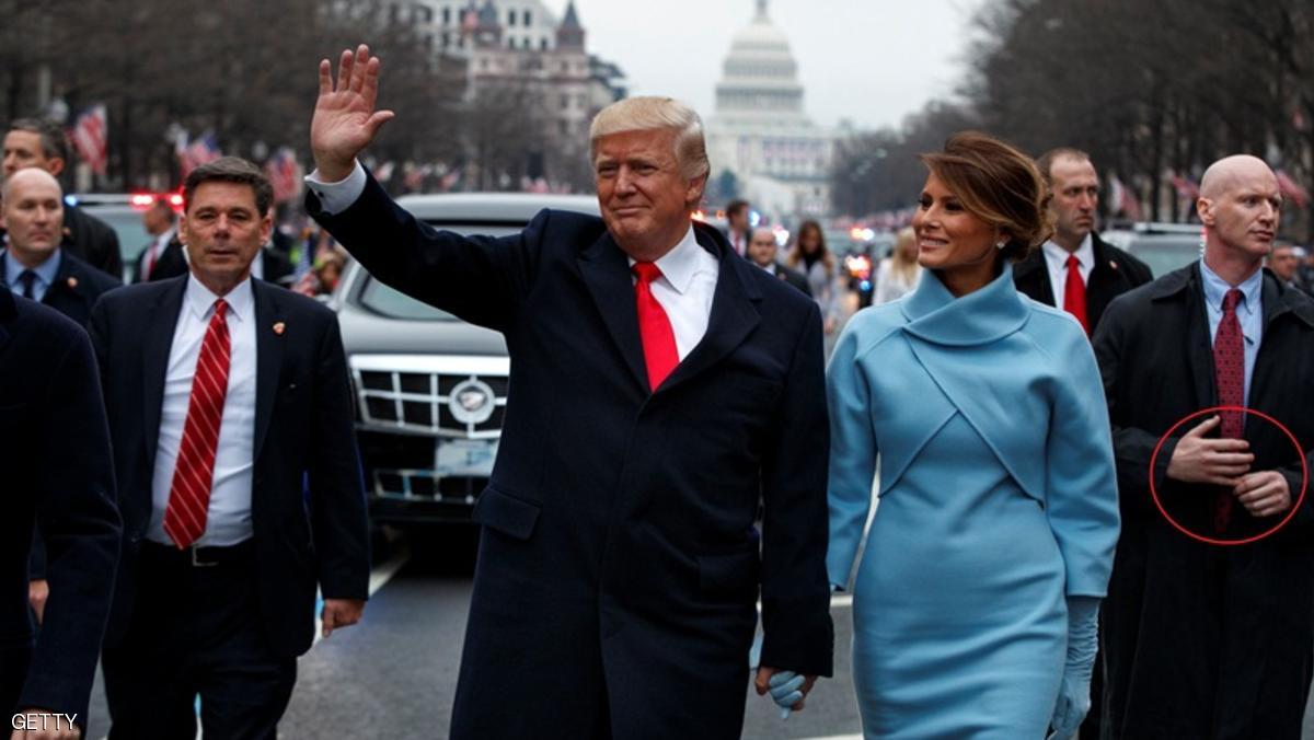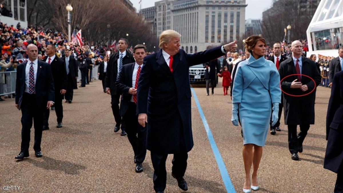 خلال مسيرة الرئيس الأميركي الجديد نحو البيت الأبيض وسط حشود من المؤيدين وبعض المعارضين، في يوم تنصيبه، الجمعة، لفت أحد الحراس القريبين من دونالد ترامب الأنظار بوضعية يده اليمنى، التي لم يغيرها لمدة طويلة، كأنما يحاول إخفاء "شيء ما".