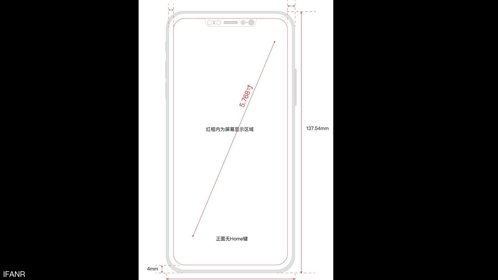 أما ارتفاع الهاتف، فيصل إلى 137.54 ميليمترا بينما يبلغ العرض 67.54 ملتمترا، وتبعا لذلك، فإن هاتف آيفون المرتقب سيكون قريبا من طول آيفون 7 البالغ 138.3 ميلمترات، لكن الهاتف الجديد سيكون أكثر عرضا (67.1 ملمترات).