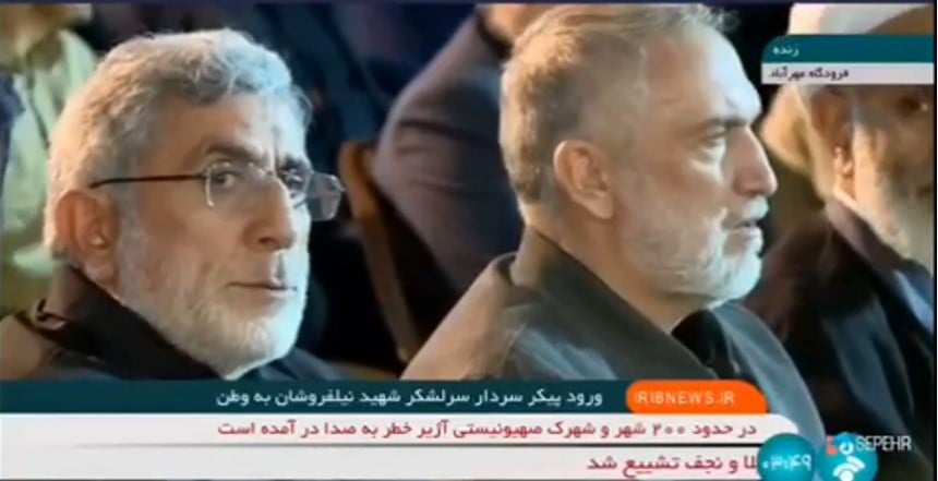 بثّ التلفزيون الإيراني مشاهد مباشرة، تظهر قائد فيلق القدس في الحرس الثوري العميد إسماعيل قاآني في مطار مهر آباد في طهران، حيث كان بانتظار وصول جثمان الشهيد عباس نيلفروشان، عقب تشييعه في العراق.