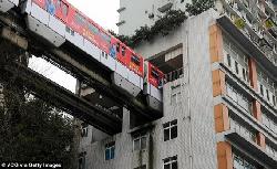 قطار يشقُّ طريقه وسط مبنى سكني ضخم في الصين