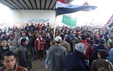 وانطلقت في ساحة الفردوس تظاهرة أخرى لعائلات فقيرة متجاوزة على مباني الدولة للمطالبة بعدم إجبارهم على ترك مساكنهم.