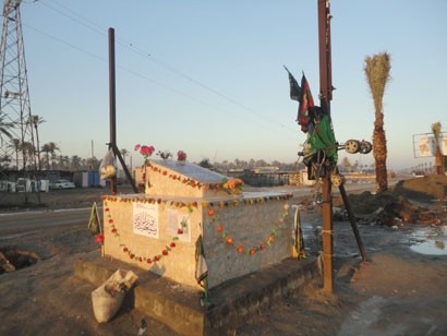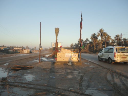 اقام اهالي منطقة السياحي في قضاء الهندية التابه لمحافظة كربلاء المقدسة نصبا تذكريا رمزيا لشهداء التفجير الارهابي الذي حدث خلال زيارة اربعينية الامام الحسين التي انتهت نهاية كانون الثاني الماضي