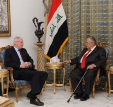 بحث رئيس الجمهورية جلال طالباني اليوم الخميس،مع سفير الولايات المتحدة الأمريكية في العراق جيمس جيفري بين جمهورية العراق والولايات المتحدة الأمريكية. وقال بيان لرئاسة الجمهورية تلقته وكالة براثا نيوز اليوم :ان الجانبين استعرضا التطورات السياسية والأمنية والتقدم الحاصل باتجاه اكمال تشكيل الوزارات الأمنية في الحكومة العراقية .وفي ما يخص تطورات الأوضاع في المنطقة العربية، وبضمنها ما يحدث في مملكة البحرين الشقيقة،اشار البيان الى رئيس الجمهورية اكد على أهمية مراعاة التنوع المذهبي، وإتخاذ الاجراءات الكفيلة بتحقيق الوئام الوطني بما يرضي جميع الأطراف