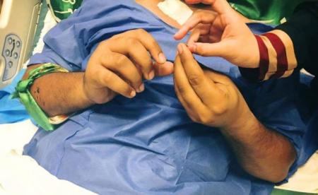 عقد المصور الجريح أمجد عبد سالم قرانه من داخل مشفاه في مستشفى الكفيل بمحافظة كربلاء المقدسة، والذي فقد ساقيه في معارك تحرير جزيرة الخالدية
