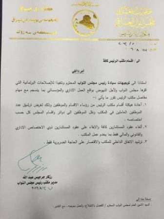 بالوثيقة.. مكتب الجبوري يعيد هيكلة اقسامه والغاء عقود المستشارين كافة