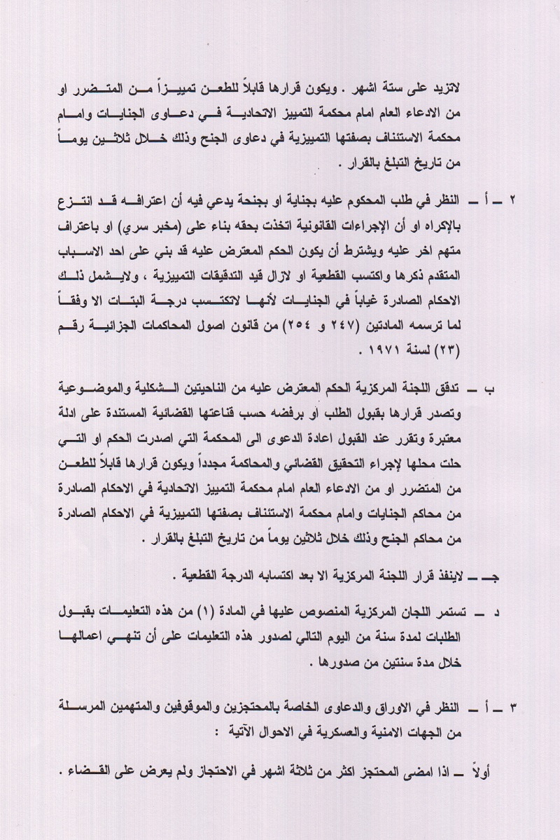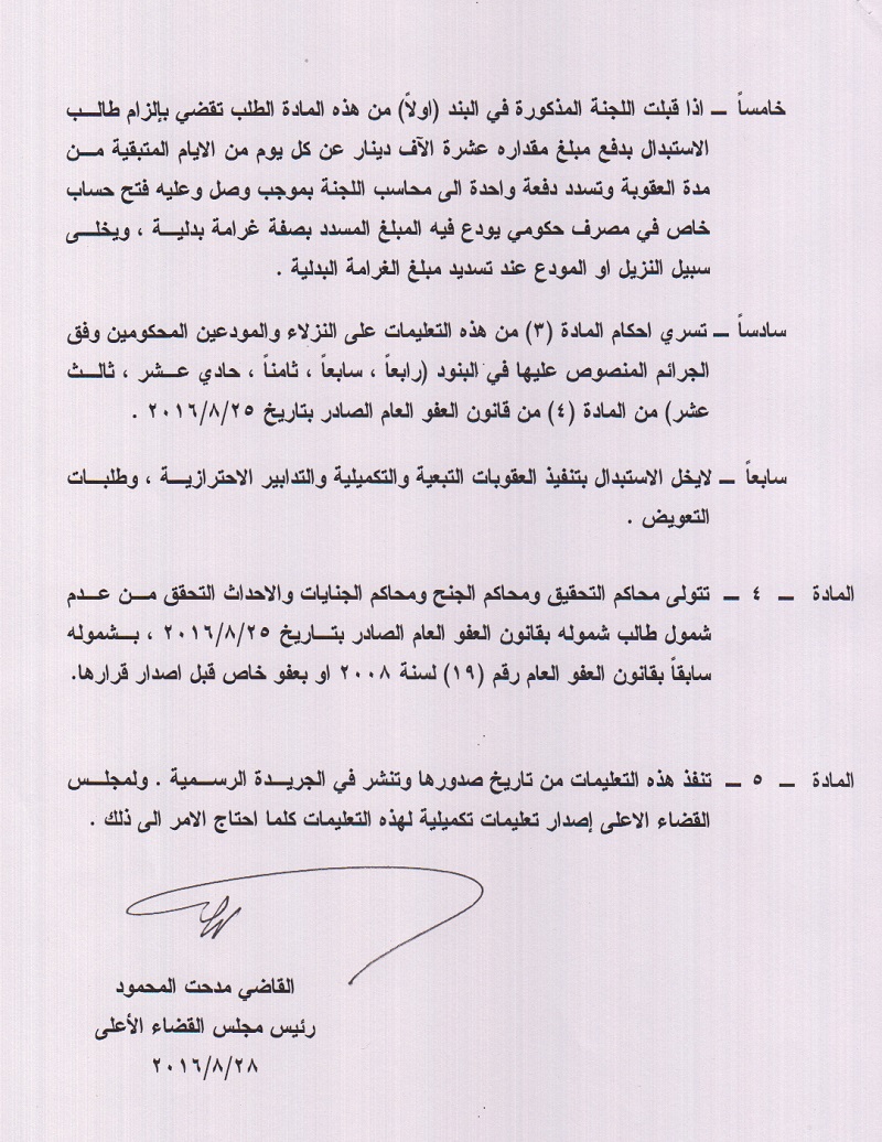 اصدر مجلس القضاء الاعلى تعليمات جديدة حول قانون العفو العام الذي صوت عليه البرلمان يوم الخميس الماضي ومن الان بدأ عمل المحامون والقضاة ونواب الادعاء العام المرتشين ليخرجوا الارهابيين من السجون