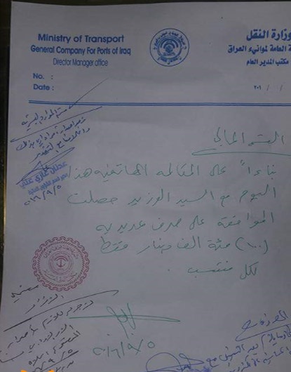 عيدية (١٠٠) الف لموظفي الموانئ والنقل البحري والنقل النهري