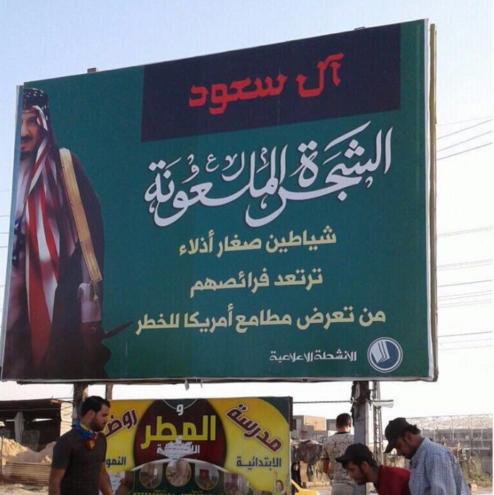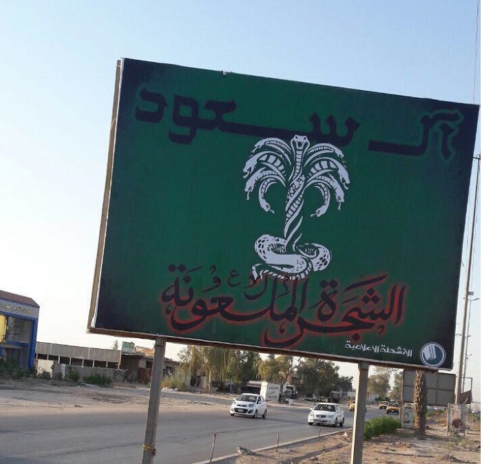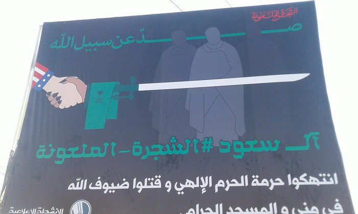 بعد يوم واحد من كلمة قائد الثورة الاسلامية آية الله السيد علي خامنئي والتي وصف فيها آل سعود بسبب جرائمهم ضد المسلمين وقتلهم لحجاج منى بـ"الشجرة الملعونة"، انتشرت في العاصمة العراقية بغداد يافطات كتب عليها "آل سعود الشجرة الملعونة" تشرح فيها جرائم حكام آل سعود.