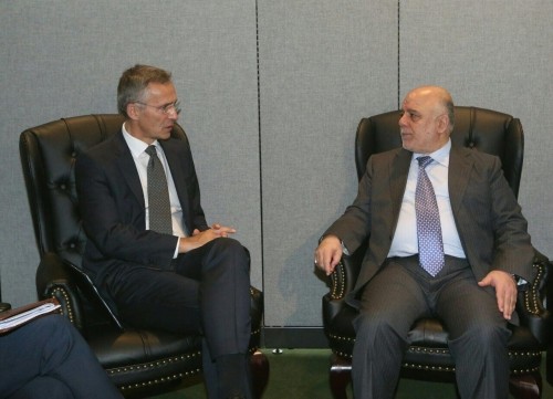 بحث رئيس الوزراء حيدر العبادي مع الامين العام لمنظمة حلف شمال الاطلسي [الناتو] ينس ستولنبرغ تدريب القوات العراقية والاستعدادات لتحرير الموصل وتواجد عدد من القوات تركية في شمال العراق.