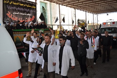 شاركت أكثر من 100 موكب وهيئة حسينية ضمن الاستعراض السنوي الذي تقيمه هيئة المواكب الحسينية في التاسع من شهر محرم الحرام في قضاء الزبير الواقع غرب البصرة وبمشاركة عدد من الدوائر الخدمية والأمنية والمدارس .