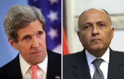بحث وزير الخارجية المصري سامح شكري مع نظيره الامريكي جون كيري تطورات الاوضاع في كل من العراق وسوريا وليبيا بما في ذلك الجهود الخاصة بمكافحة الارهاب في العراق.