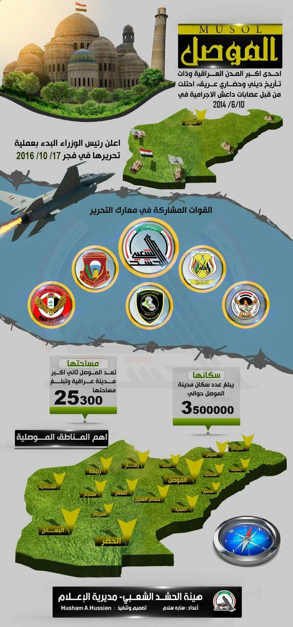 5_ الناطق باسم قوات الحشد الشعبي /عصائب أهل الحق الحاج جواد الطليباوي : قواتنا تتحشد في مواقعها بالموصل ضمن الخطة المرسومة والقوات مجهزة بأسلحة ثقيلة ونوعية .