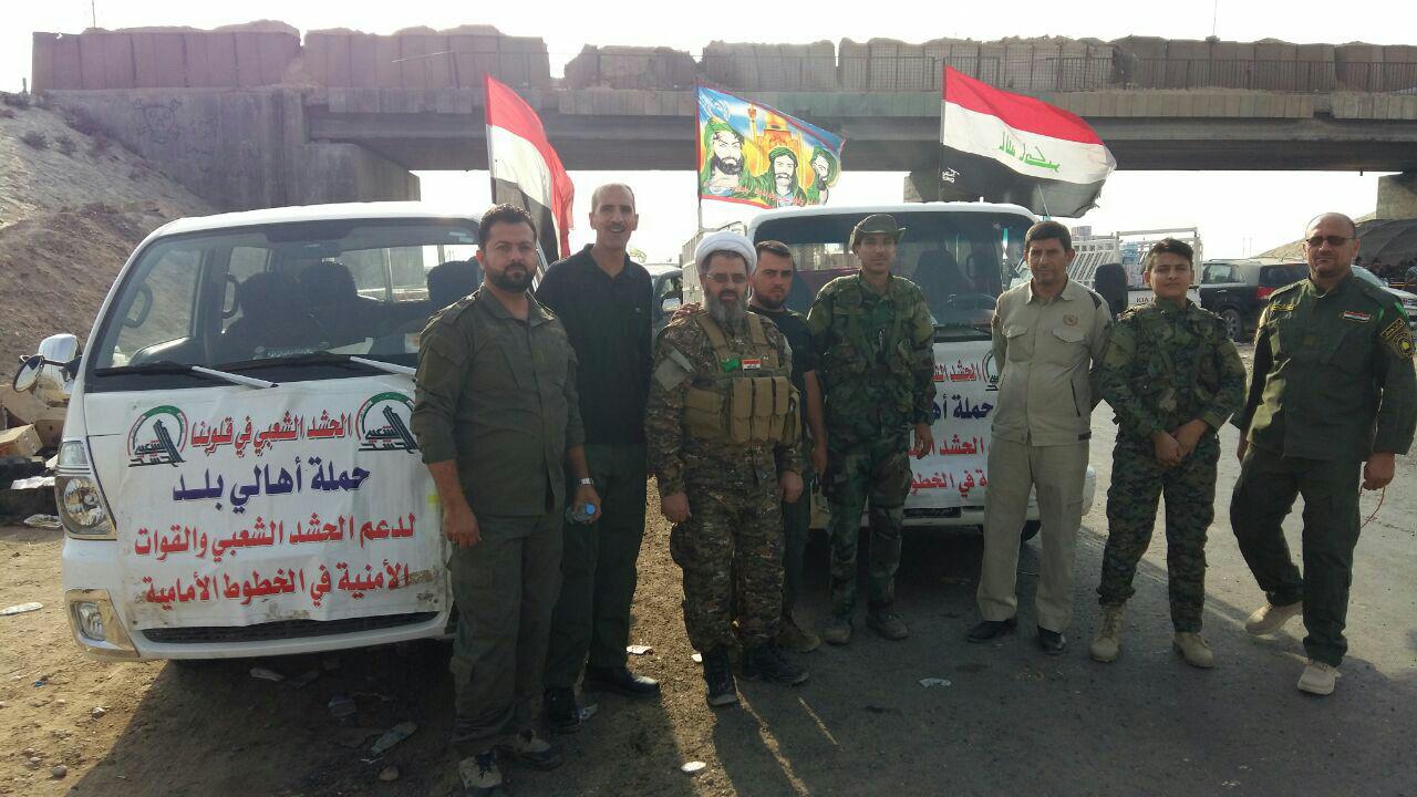 قدم أهالي قضاء بلد (جنوب سامراء المقدسة ) المحرر من دنس عصابات داعش الإرهابية قافلة دعم لوجستي لقوات الشرطة الاتحادية و الحشد الشعبي والنازحين في مناطق جنوب غرب مدينة الموصل .