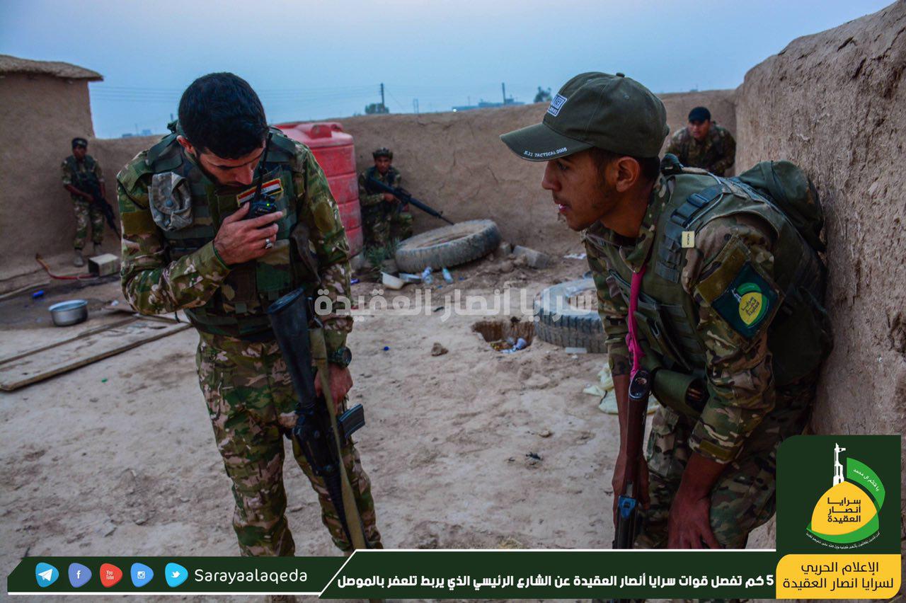 قال المتحدث الرسمي بأسم سرايا أنصار العقيدة ان خمسة كيلومترات فقط تفصلنا على الشارع الرئيسي الذي يربط تلعفر بالموصل