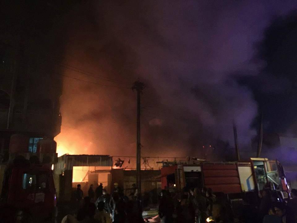 نشب حريق كبير مساء الأربعاء بمنطقة سبع قصور في منطقة الكرادة وسط بغداد.