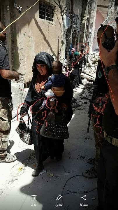 هذه الداعشية التي بالصور حاولت استهداف الرائد احمد أبوالعلم المعموري وابطال الفوج الاول36 من قوات جهاز مكافحة الإرهاب بحزام ناسف مستغلة الغيرة والدين الذي يملئ قلوب ابطالنا بعدم تفتيش أجساد النساء حيث سحبت صاعق التفجير لحزامها الناسف ولكن ولله الحمد انفجرت الداعشية بعيدا عن الابطال .
