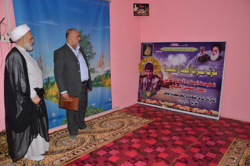 تشرف سماحة الشيخ ليل امس الاول بزيارة عوائل الشهداء الابرار القادة ابو علي السكيني وسعدون السكيني ومراسل الاعلام الحربي رسول الحربي اضافة الى منزل القائد الجريح ابو جهاد السكيني وذلك في منطقة النشوة شمال مدينة البصرة،