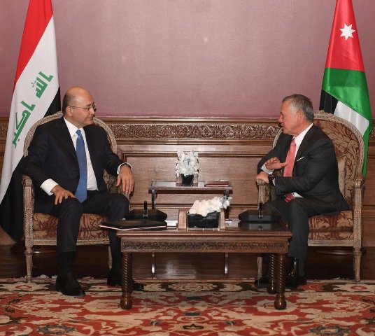 وقالت رئاسة الجمهورية في بيان إن "رئيس الجمهورية برهم صالح اجتمع، اليوم الخميس، في عمان مع العاهل الأردني الملك عبد الله الثاني".