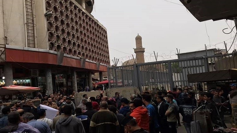 تظاهر العشرات من أهالي بغداد، صباح الجمعة (16 تشرين الثاني 2018) تظاهرة أمام البنك المركزي، مطالبين بمحاسبة المقصرين بهدر المال العام.