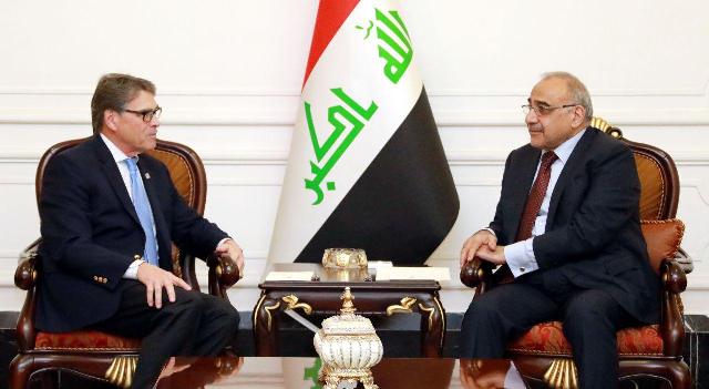 أكد رئيس الوزراء عادل عبد المهدي لوزير الطاقة الامريكي، الثلاثاء، أن استقرار العراق بعد هزيمة تنظيم "داعش"الارهابي وفر فرصة كبيرة لعمل الشركات العالمية، فيما أكد الوزير الامريكي استعداد بلاده لتطوير قطاعي الكهرباء والنفط في العراق.
